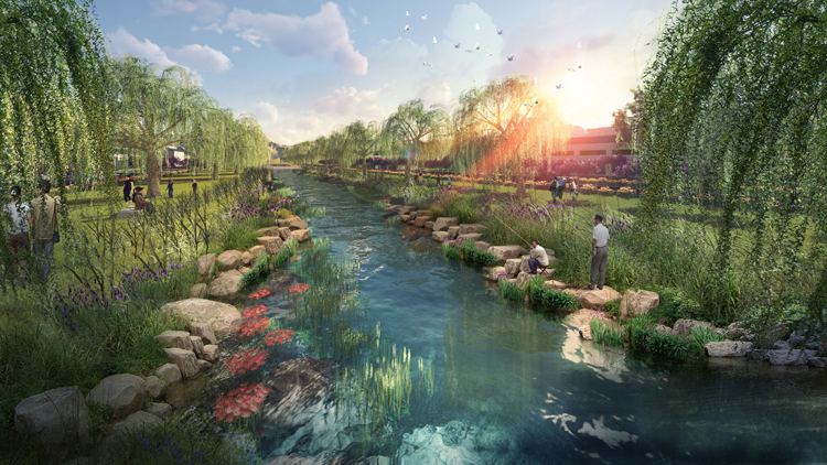 云梦县西大渠18.8KM河道综合整治,工程涵盖:截污县城管网完善、乡村污水收集处理、河道清淤、 河道生态修复、护坡、滨水景观、步道及绿化。